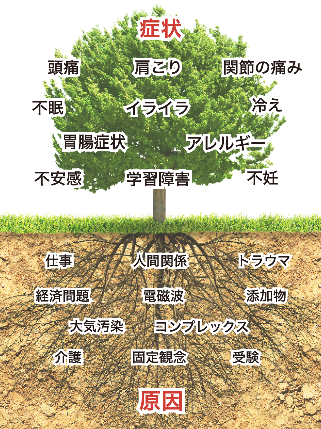 怪我や身体に表れている不調は結果であり、原因ではありません。身体や心にアンバランスがあり、その結果として怪我をしたり病気や身体の不調がおきてしまいます。